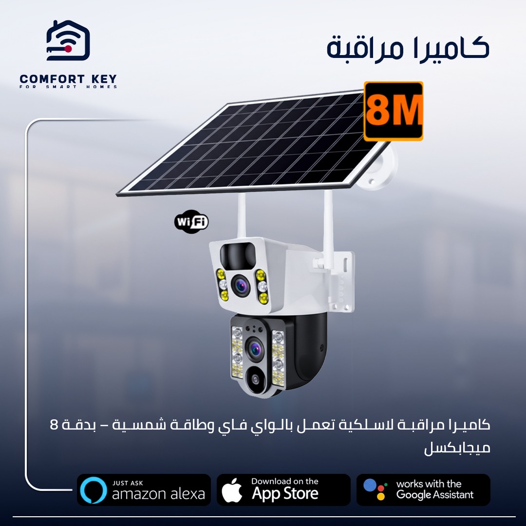 كاميرا مراقبة لاسلكية تعمل بـ Wi-Fi وطاقة شمسية – بدقة 8 ميجابكسل، عدستين .