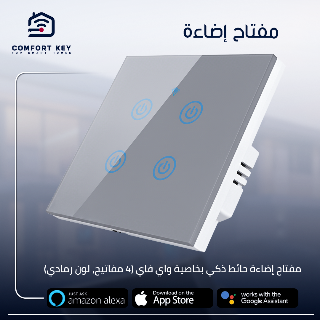 Wi-Fi Smart Wall Light Switch – 4 Gang (Gray)