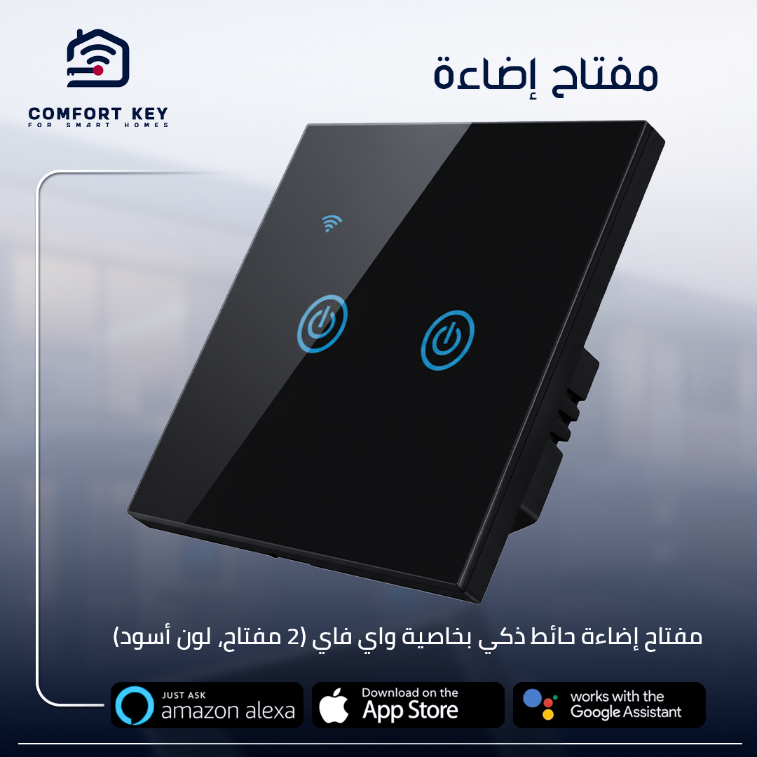 (Wi-Fi Smart Wall Light Switch – 2 Gang, Black)