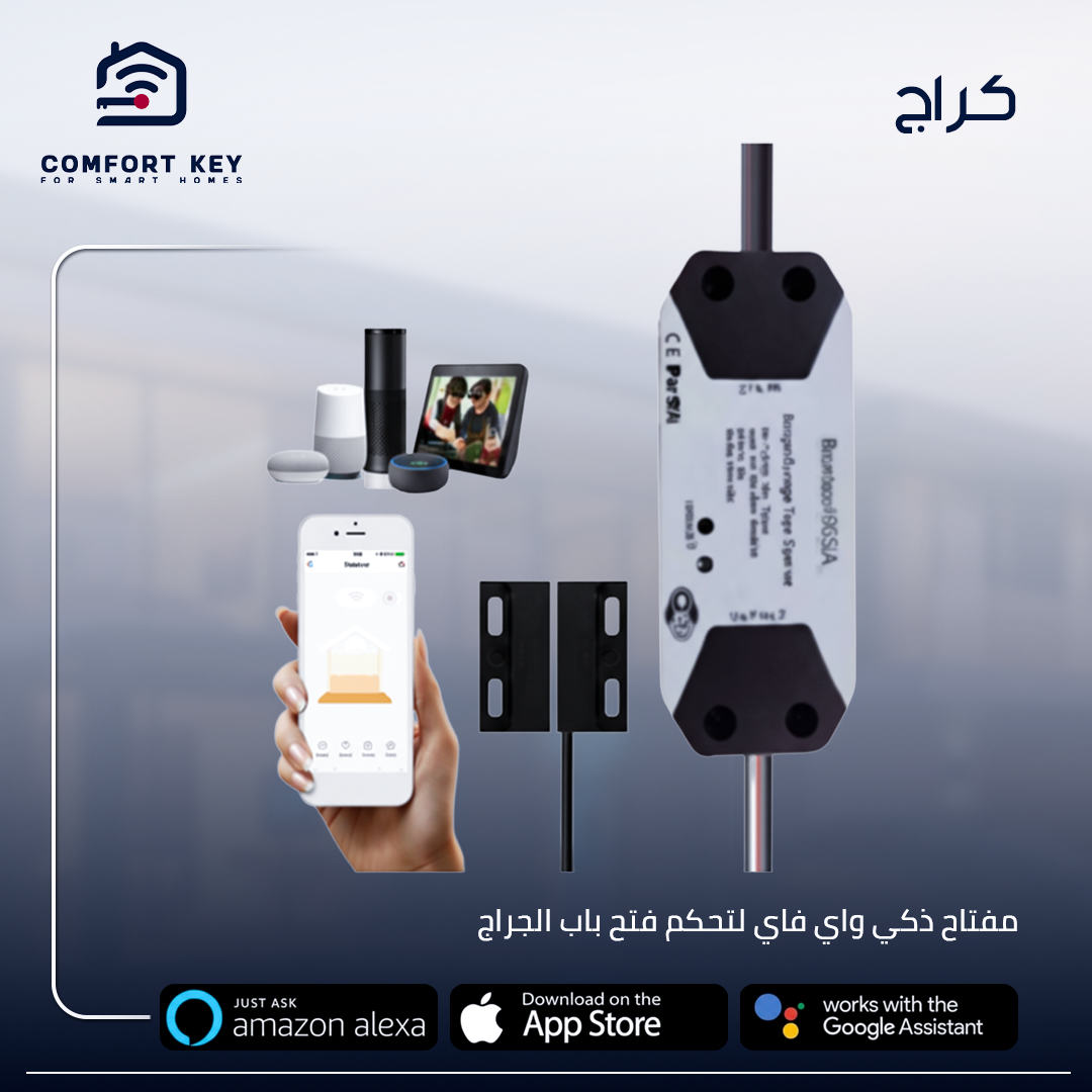 • تحكم صوتي ذكييدعم Amazon Alexa و Google Assistantفتح وإغلاق الباب باستخدام أوامر صوتية تفعيل أوتوماتيكي عند الاقتراب من الكراج .